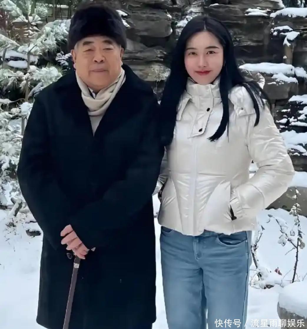 先告诉你最暖心的那一段:老范在声明一开头,就喜气洋洋宣布——他和现在的第四任妻子徐萌,喜得一枚“熊孩子”!87岁的他已经是白发苍苍,徐萌比他小整整50岁,是个模特+主持人出身的漂亮姑娘。